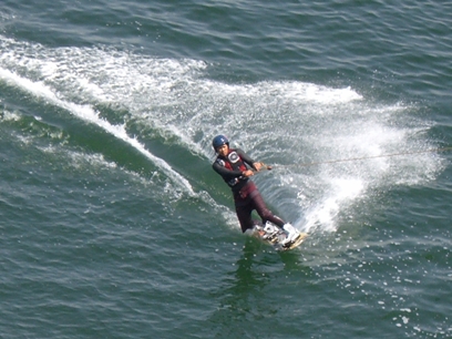 2〜3日雨模様の天気が続いていますが、先日香枦園浜に行ってみました。長いロープを利用して若者が水上スキーを楽しんでいました。青い海面に真っ白な波を立て、気持ち良さそうに走っています。少し離れた海辺では母と子が海草や貝殻を集めていました。幸せそうな親子の姿を見て思わずシャッターを押したところです。 |